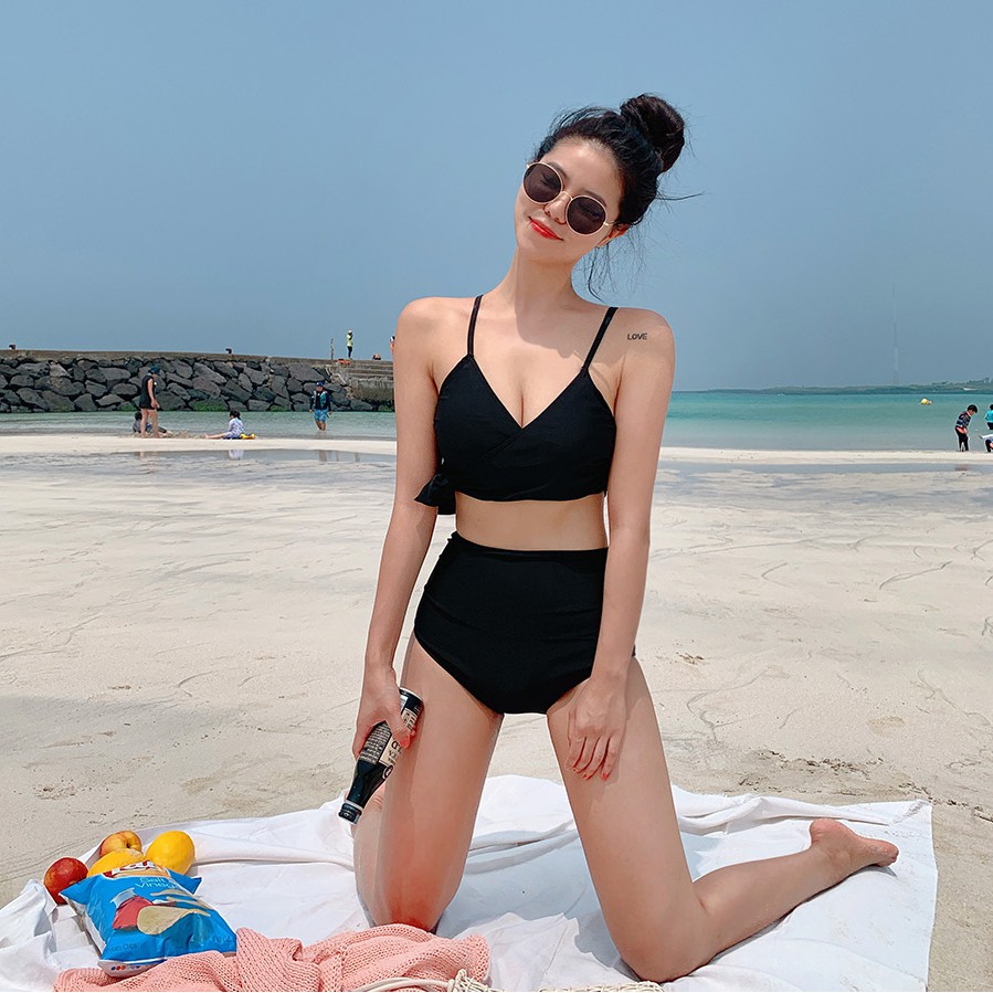 black swimsuit two piece