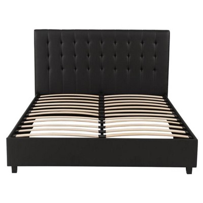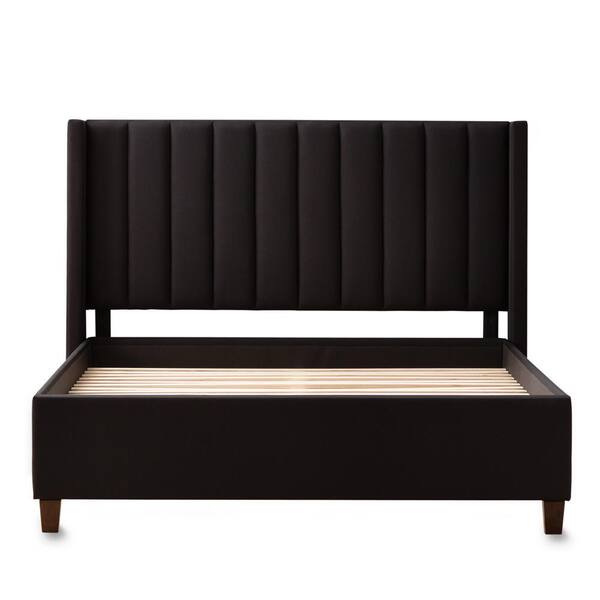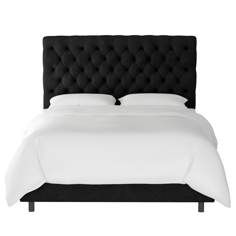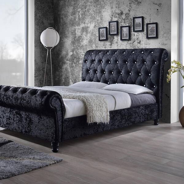 black upholstered bed