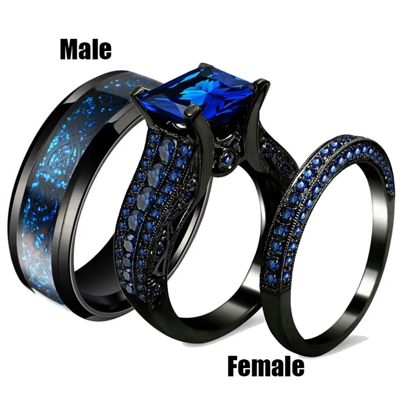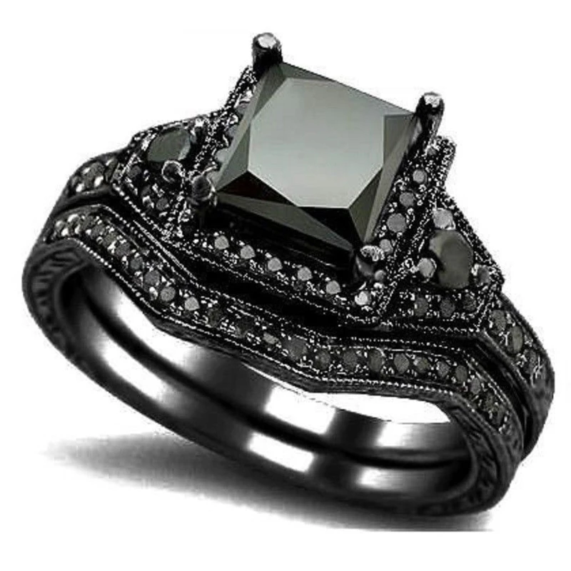 black wedding ring set