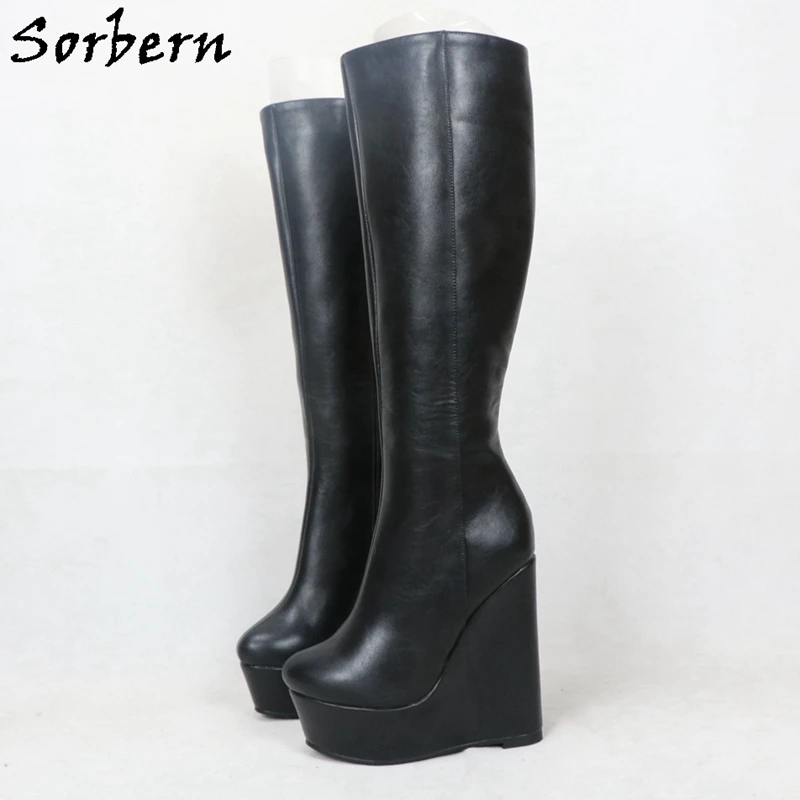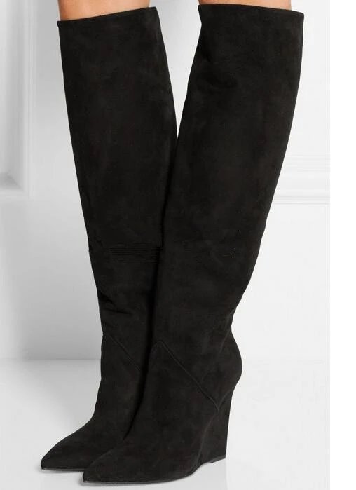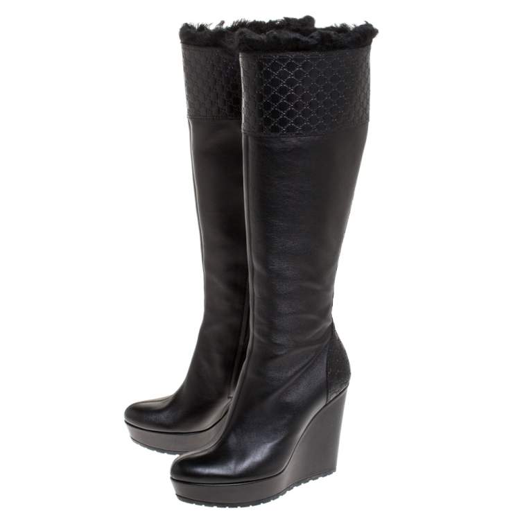 black wedge knee high boots