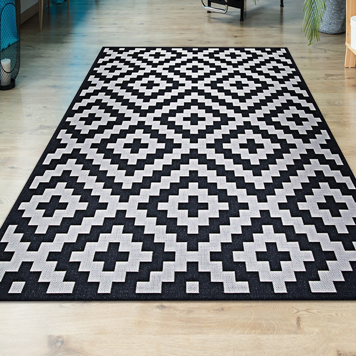 black white outdoor rug
