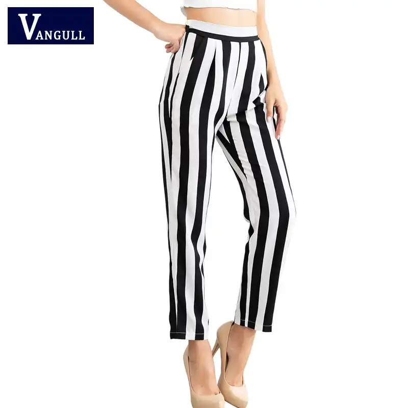 black white striped pants