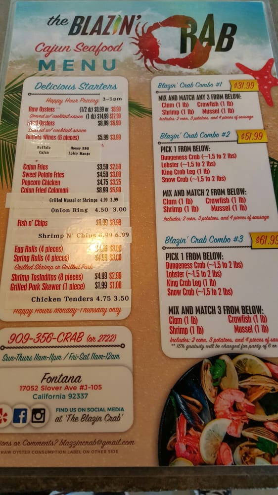 blazin crab menu