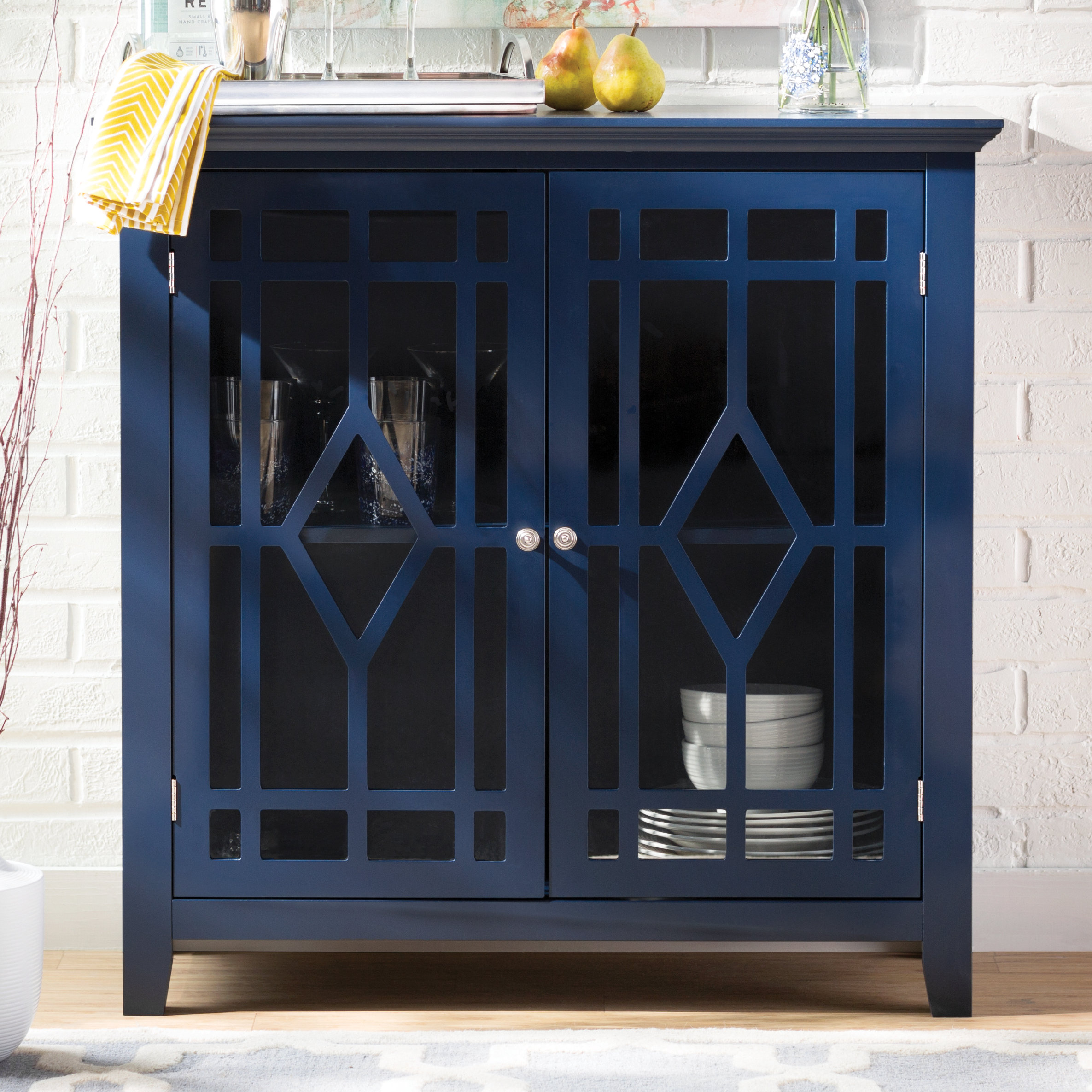 blue accent cabinet