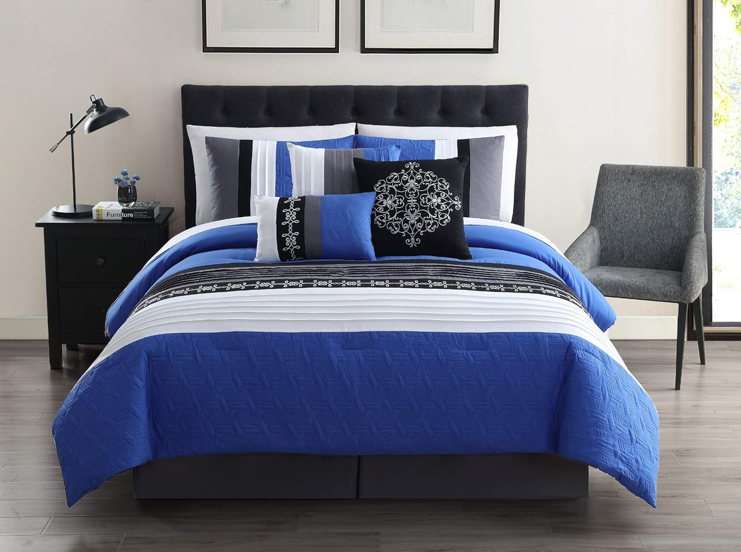 blue and black bedroom