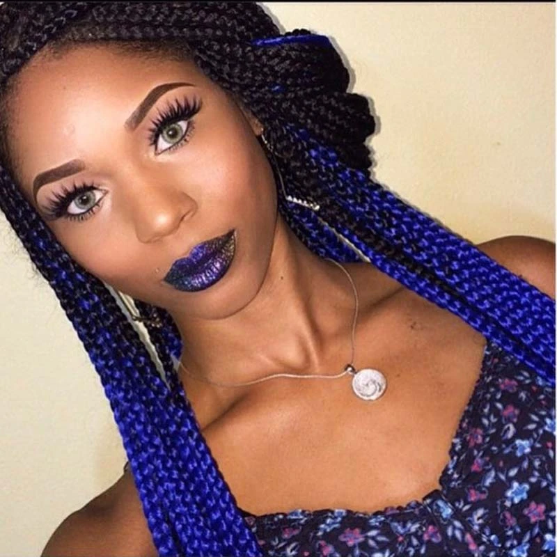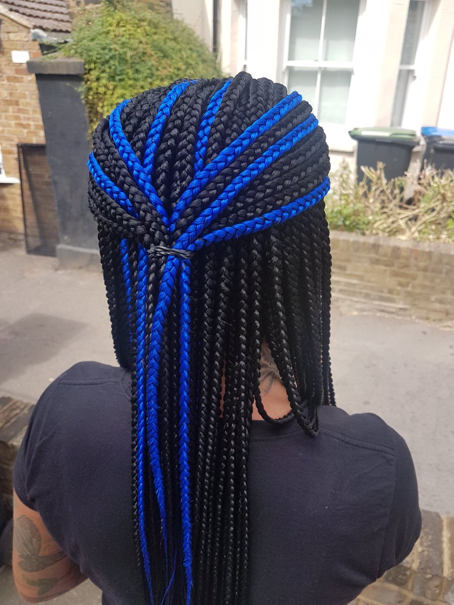 blue and black box braids
