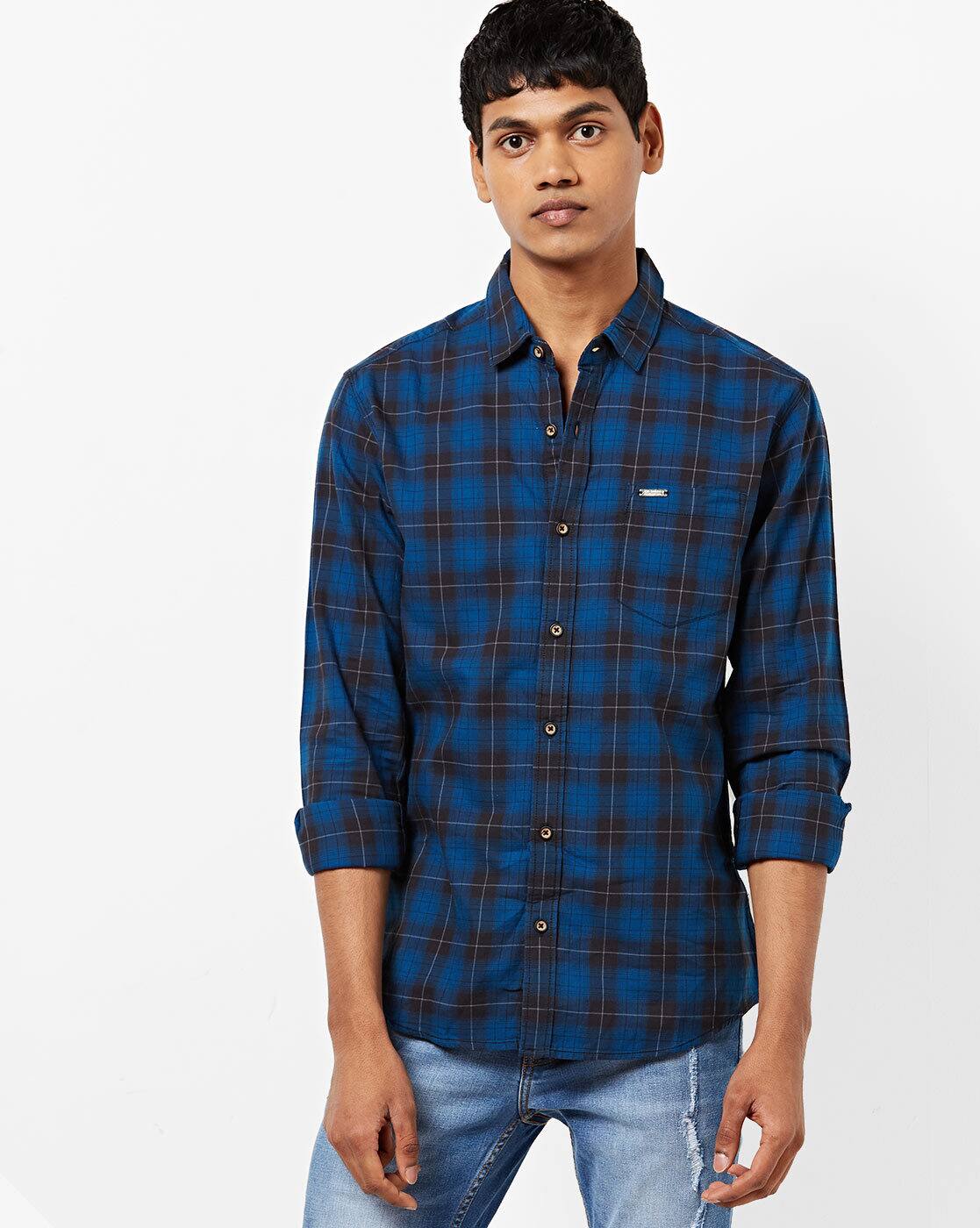 blue and black shirt