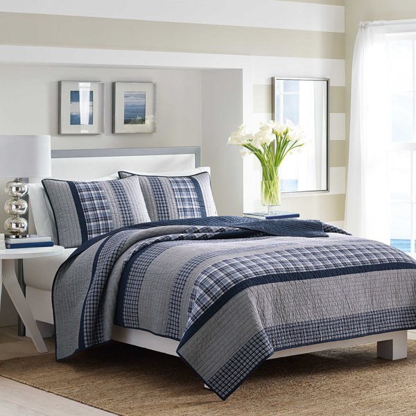 blue and gray comforter
