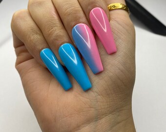 blue and pink nails