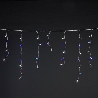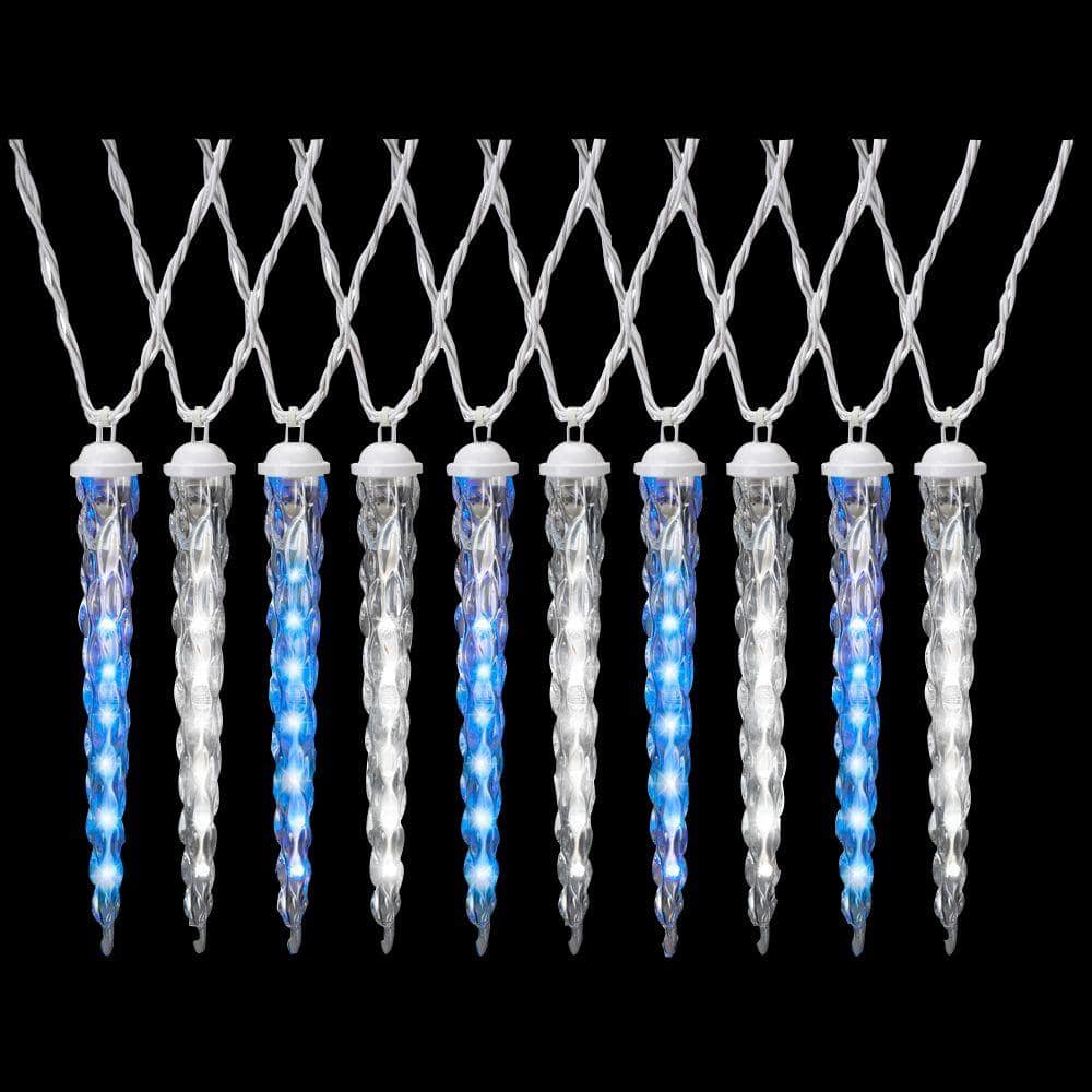 blue and white icicle lights