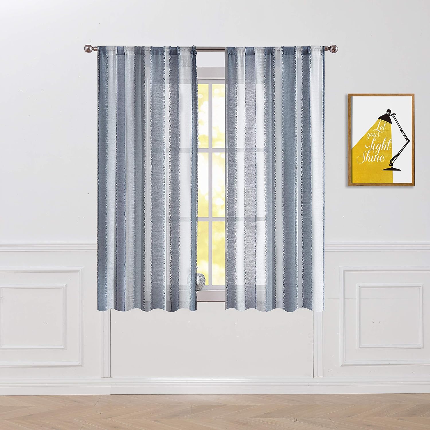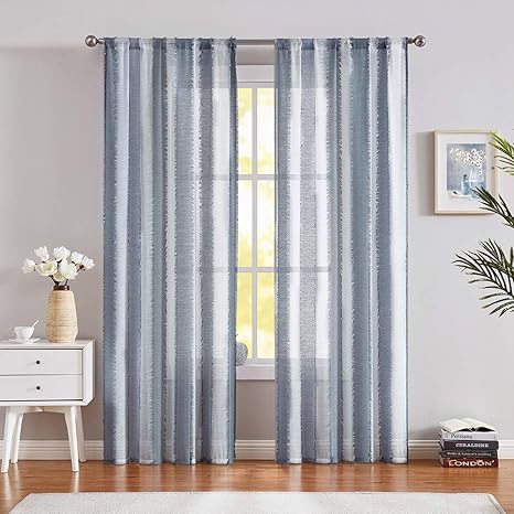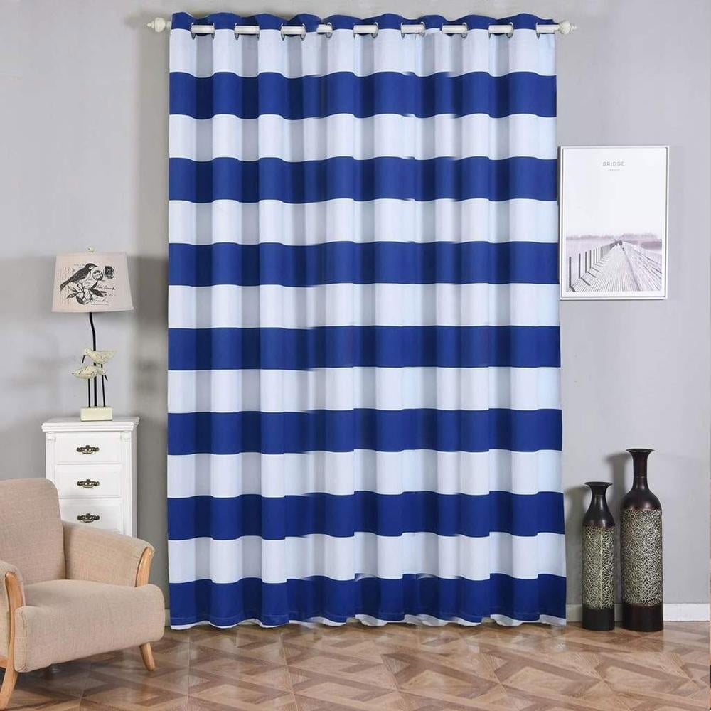 blue and white striped curtains