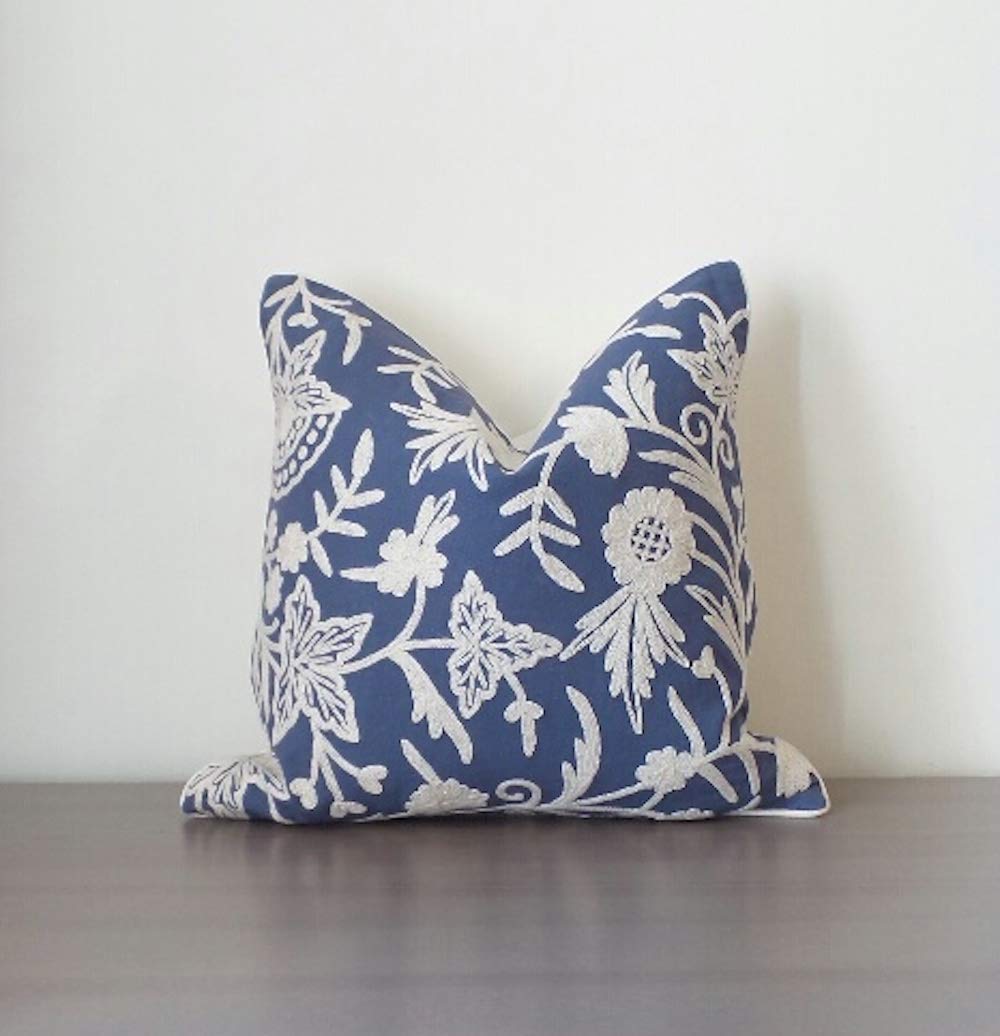 blue and white throw pillow