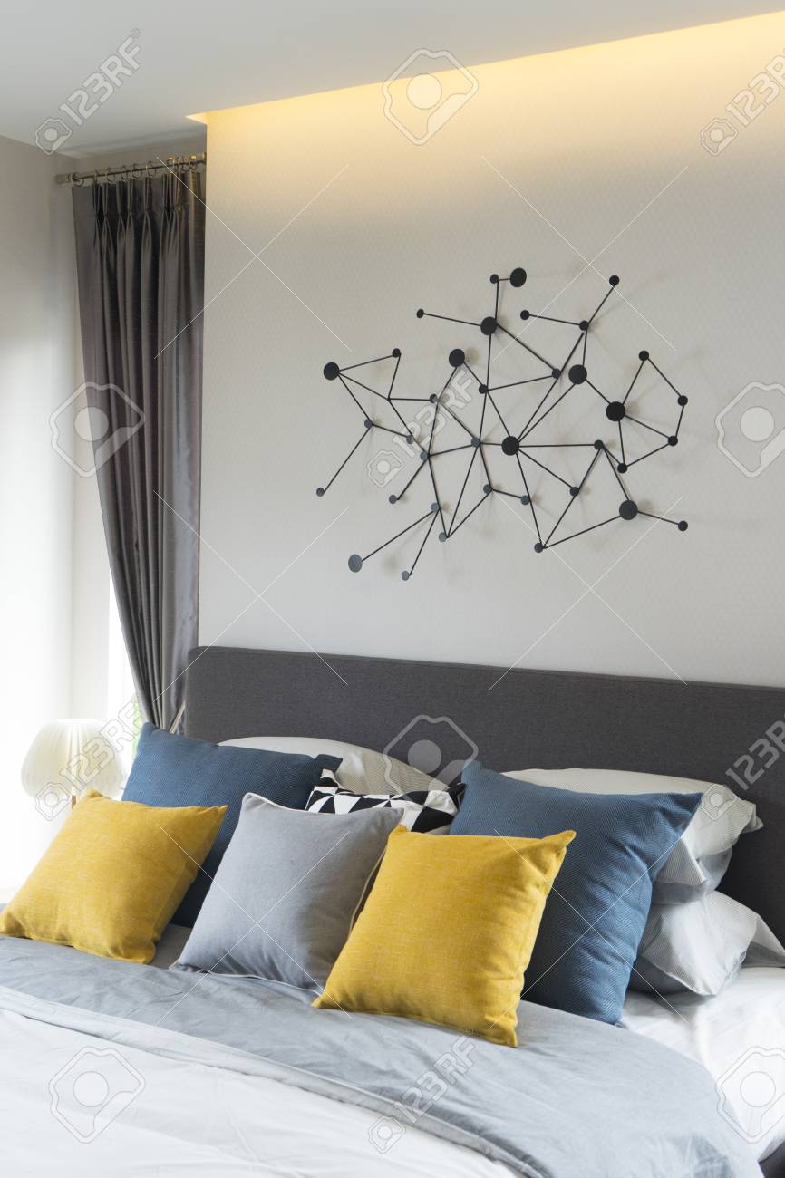 blue and yellow bedroom