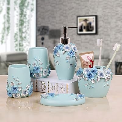 blue bathroom accessories