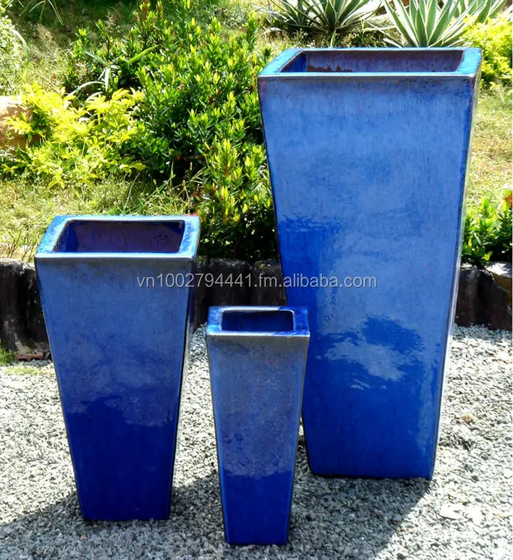 blue garden pots