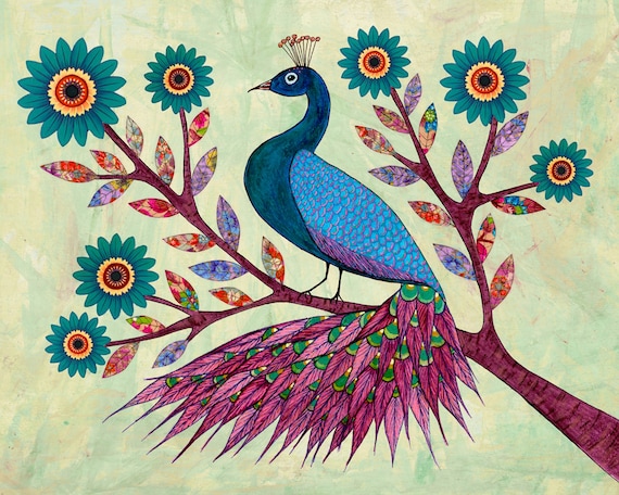 blue peacock painting