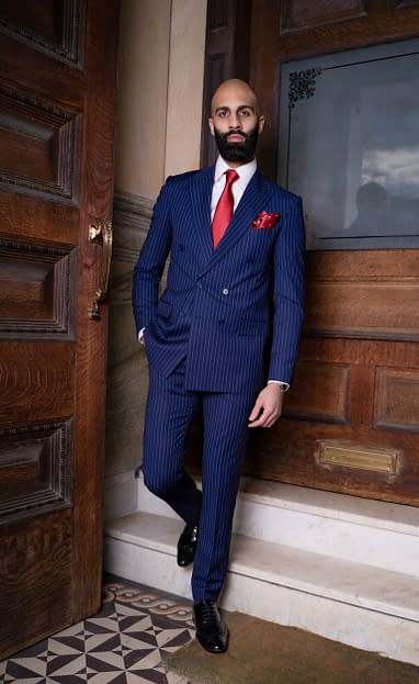 blue pinstripe suit