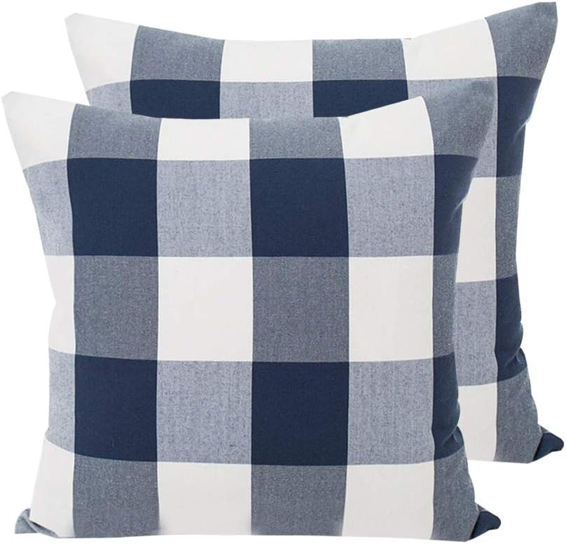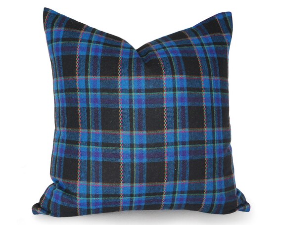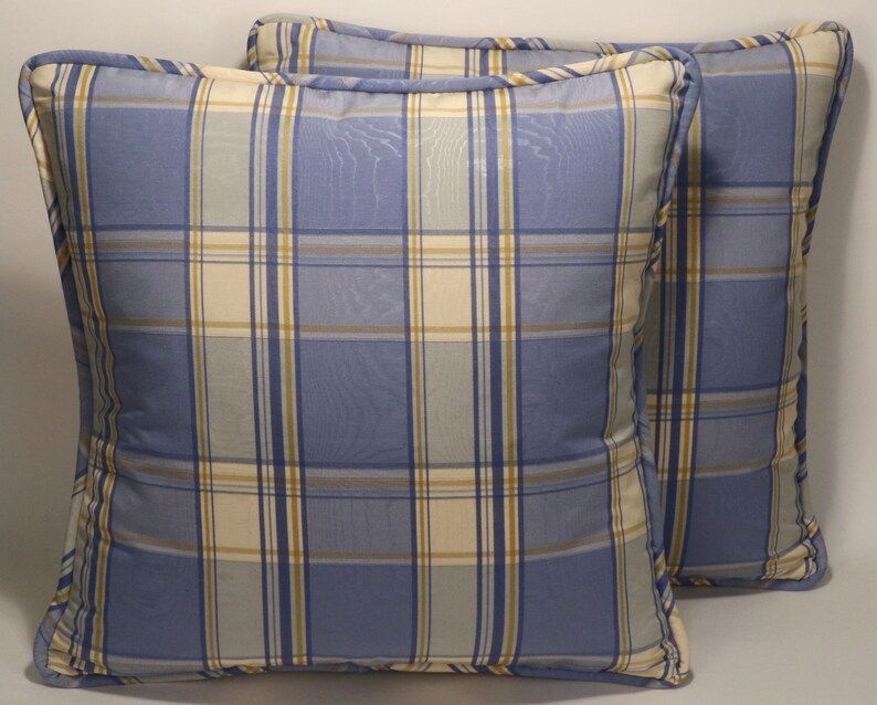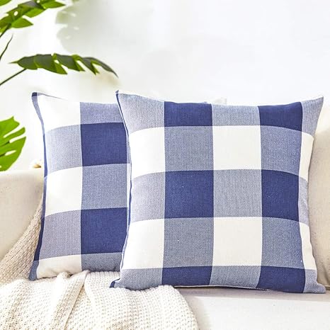 blue plaid throw pillows