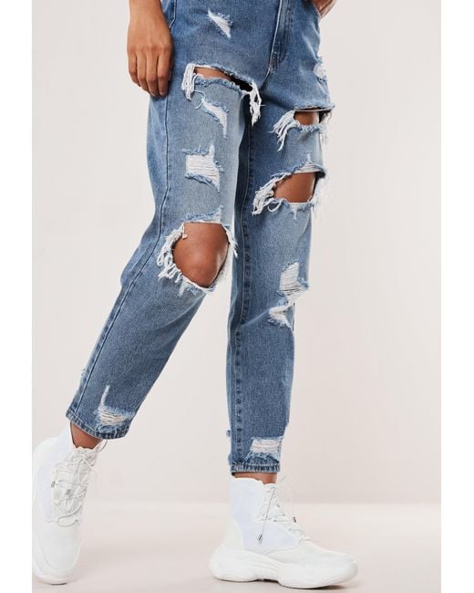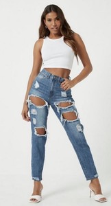 blue ripped mom jeans