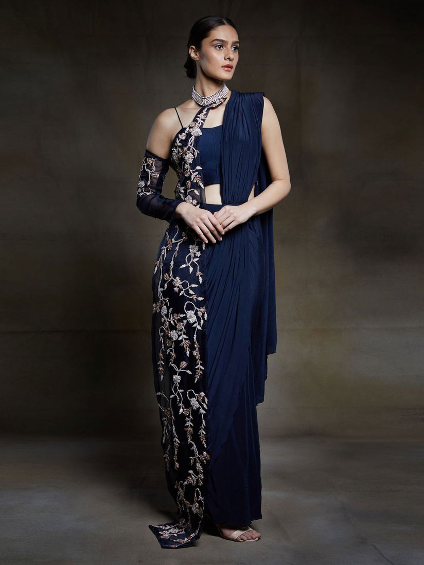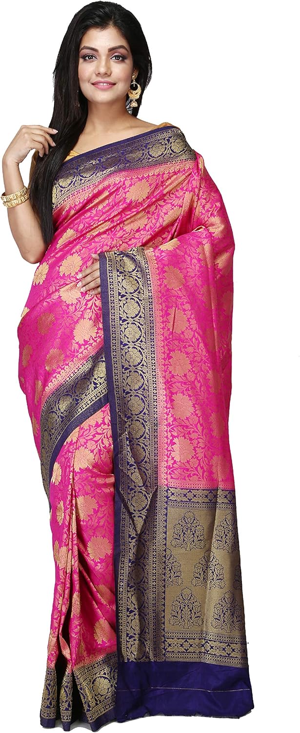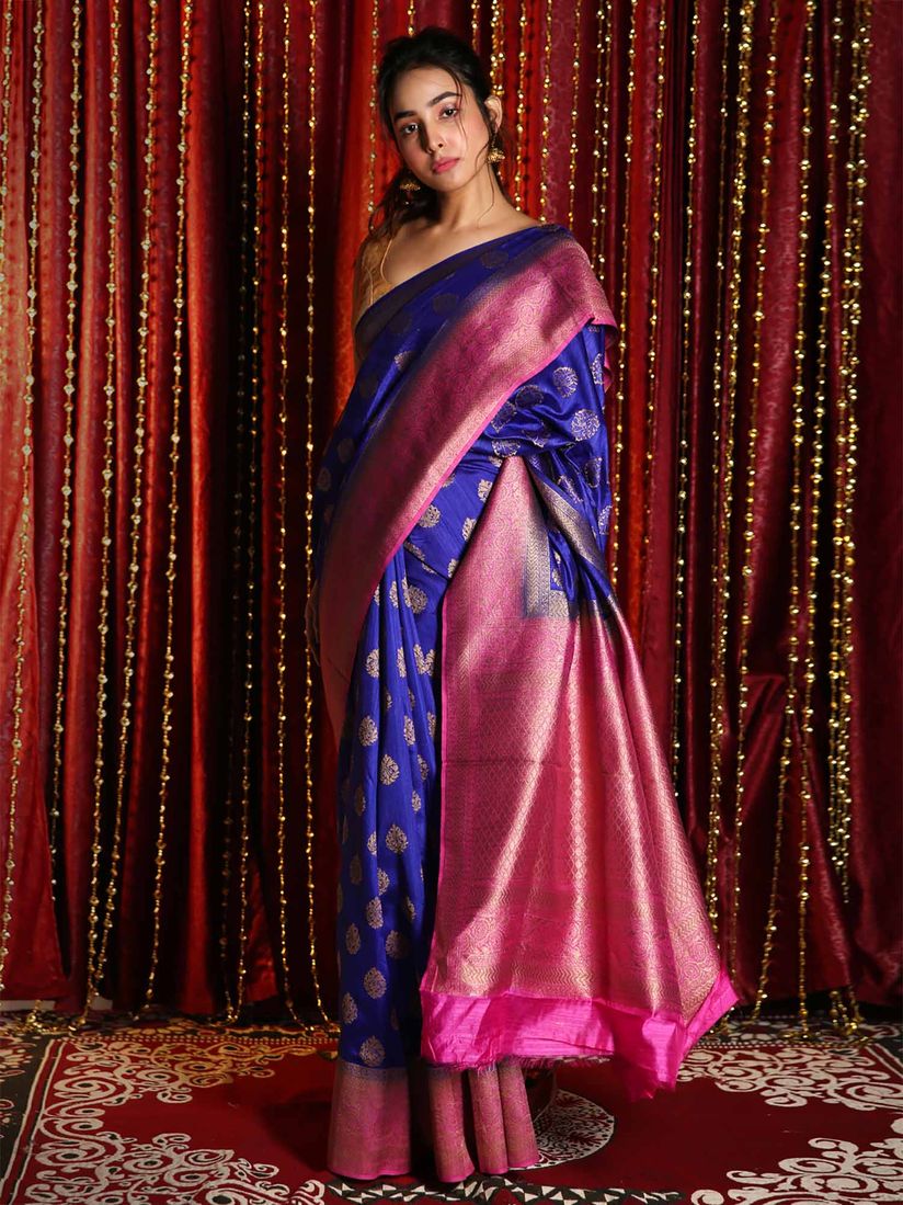 blue saree with pink blouse