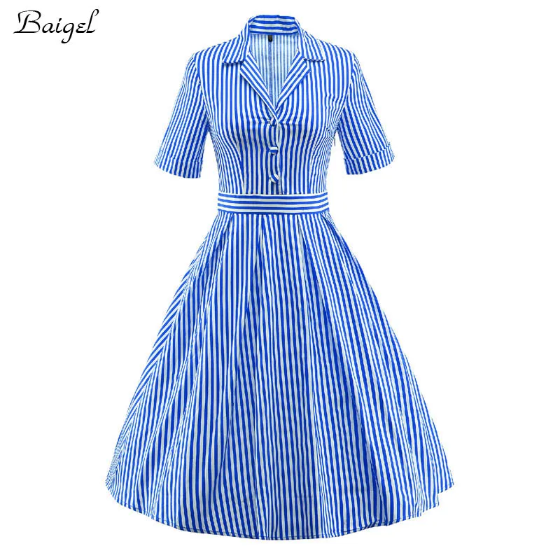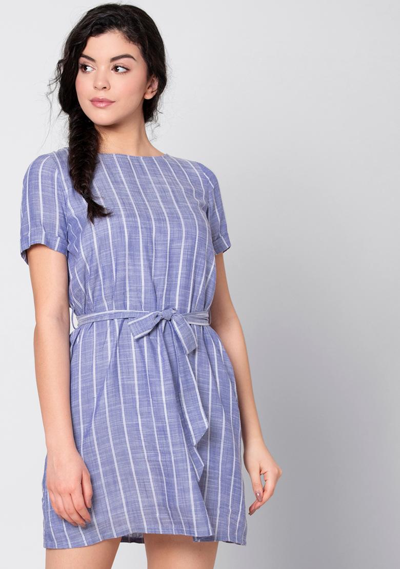blue striped dress