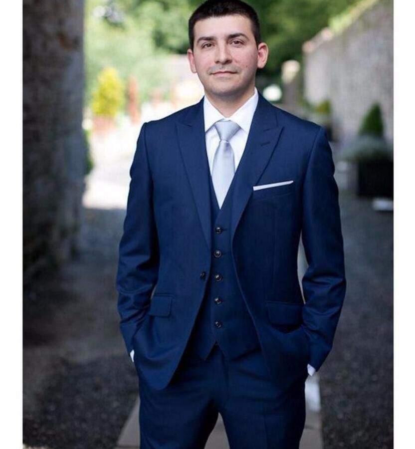 blue three piece suit