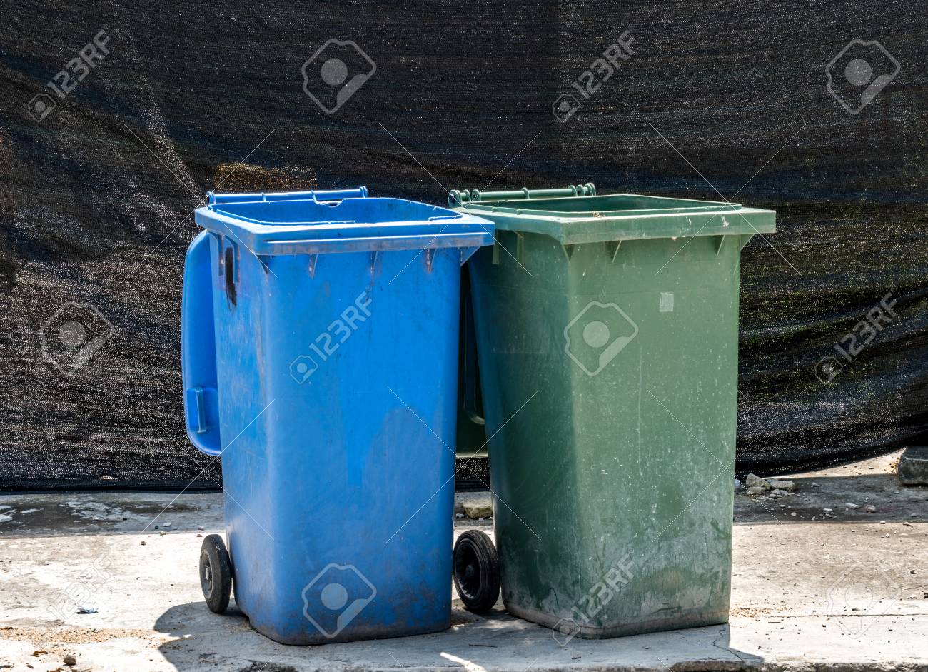 blue trash can