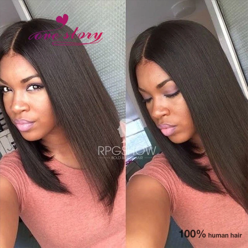 blunt cut middle part bob