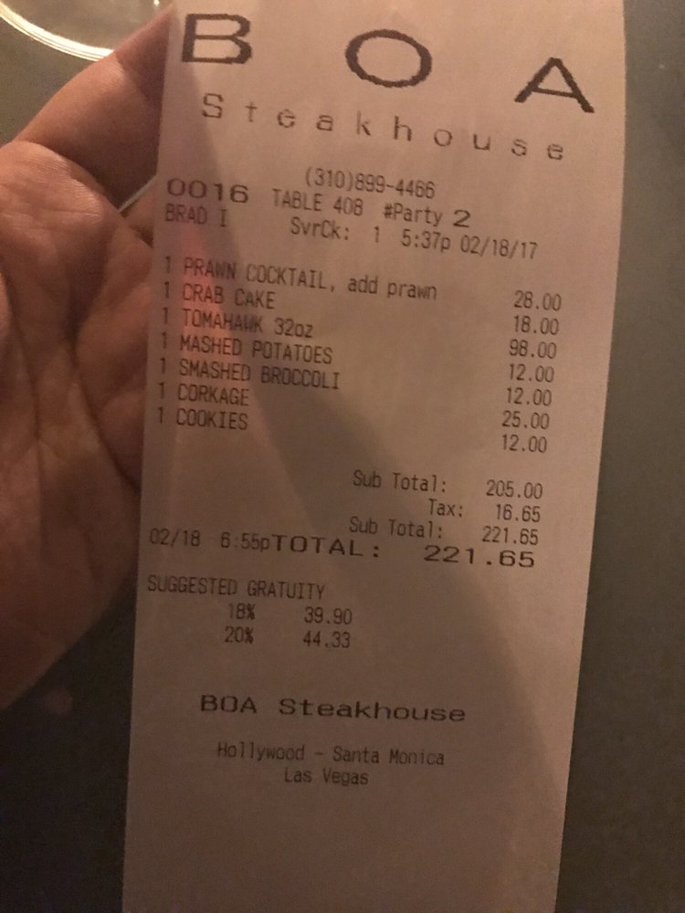 boa steakhouse price
