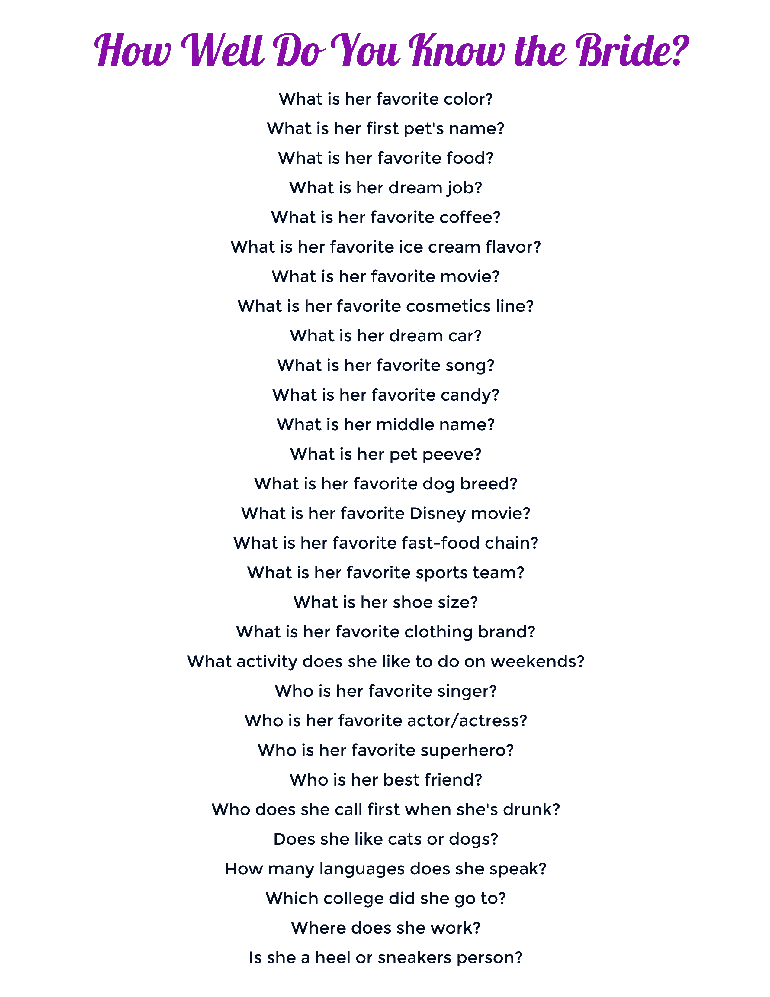 bridal shower questions