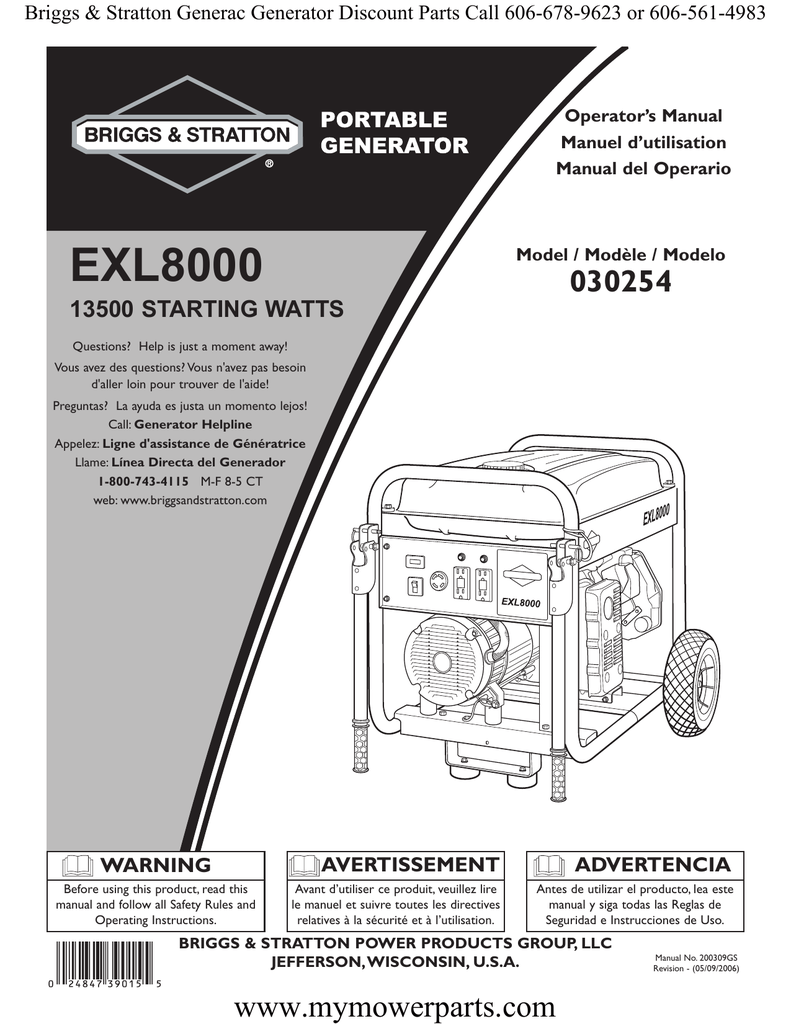 briggs and stratton exl8000 electric start generator