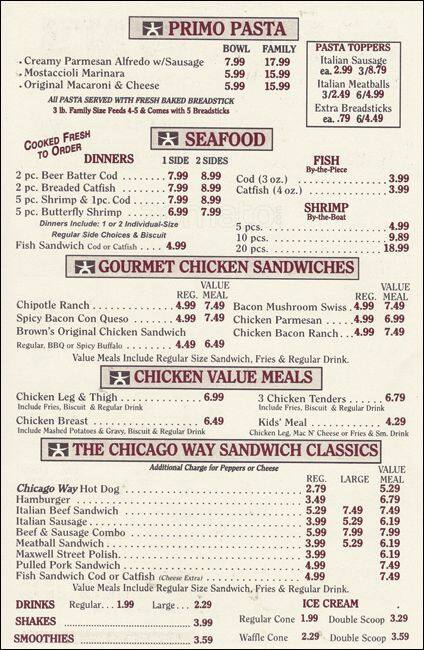 brown's chicken menu