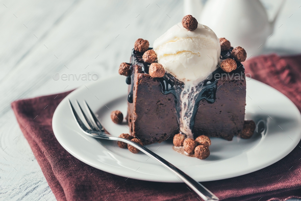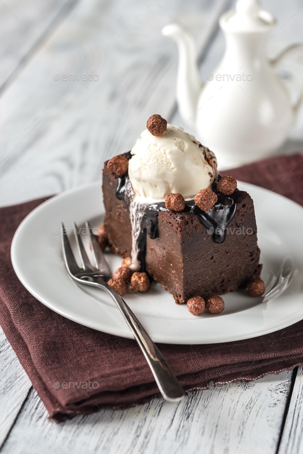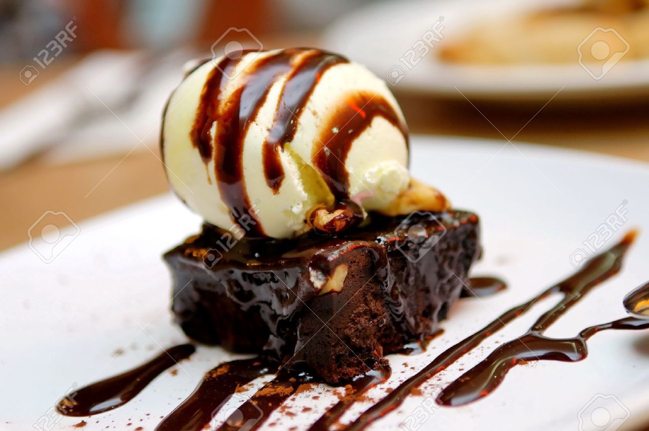 brownie with vanilla ice cream