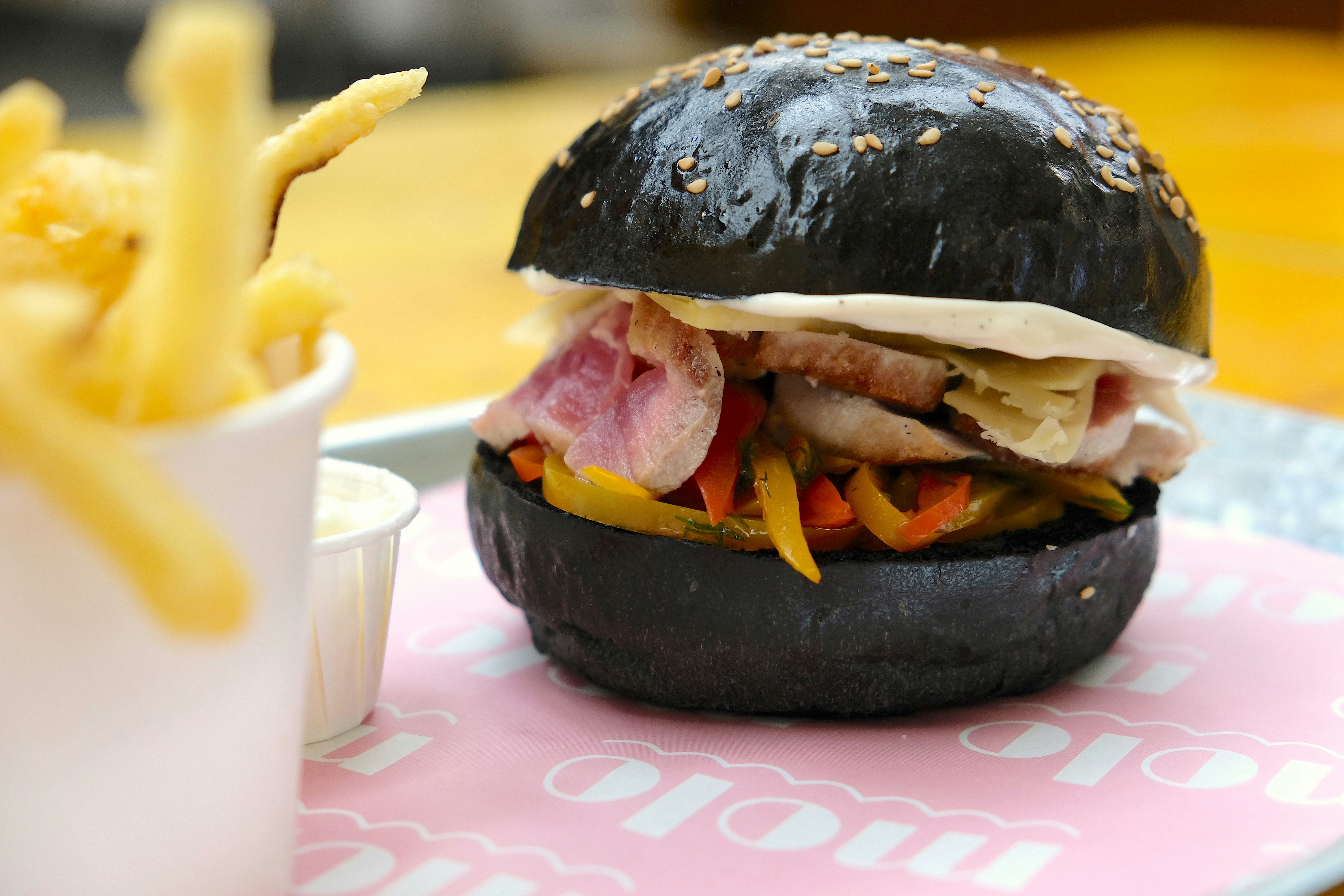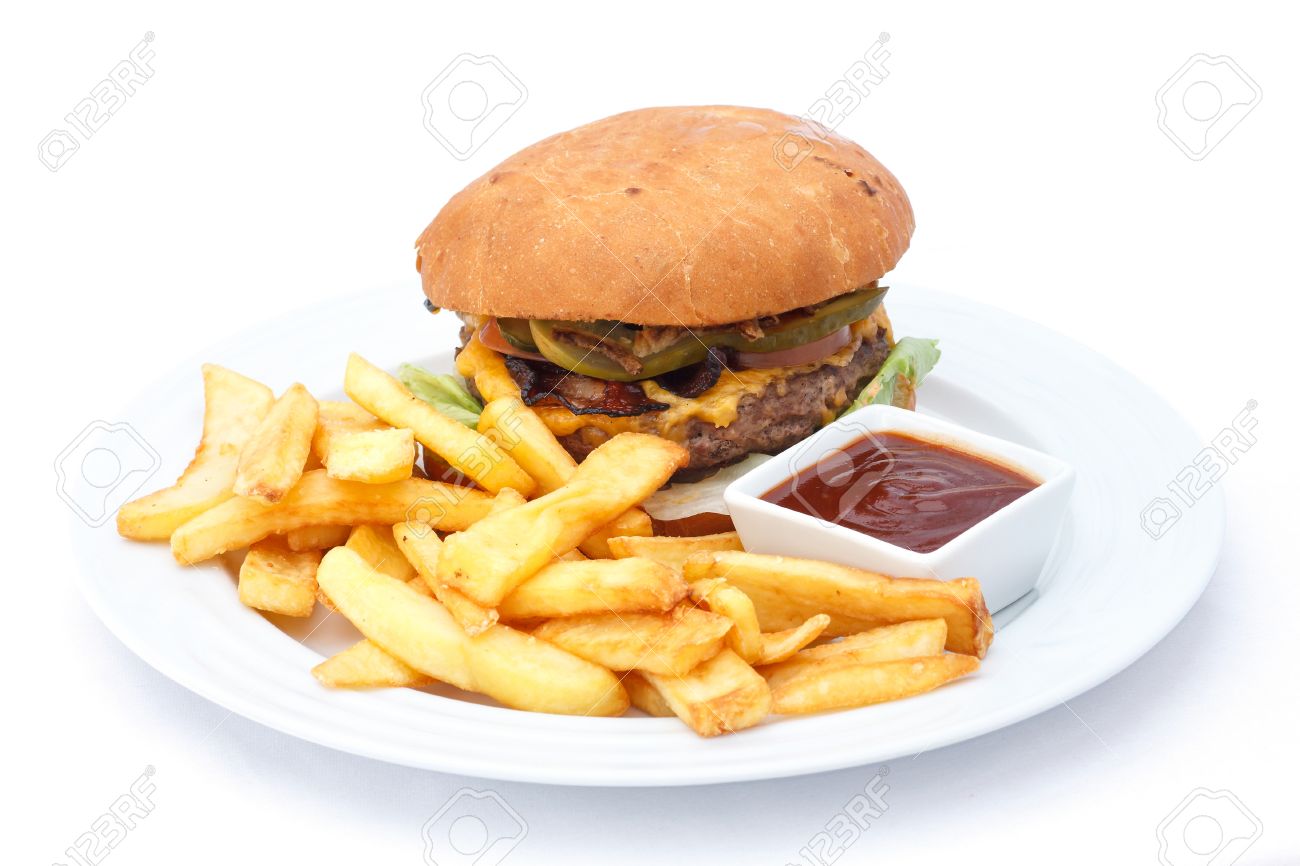 burger and chips