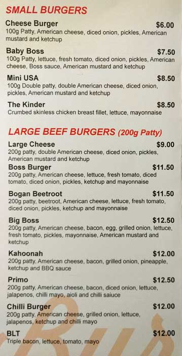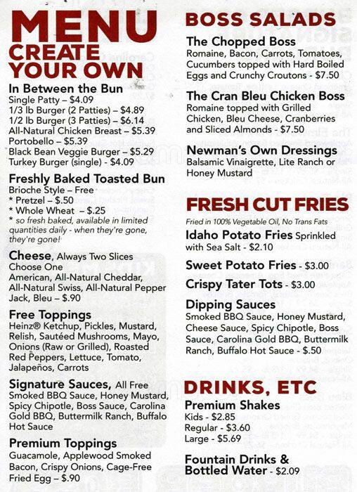 burger boss menu