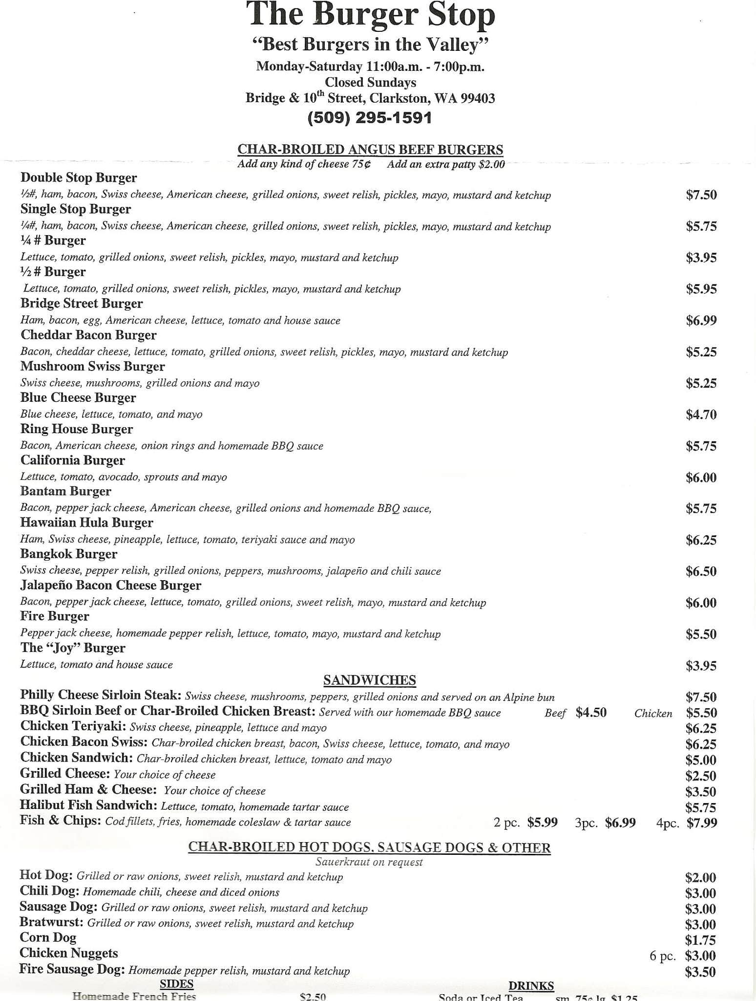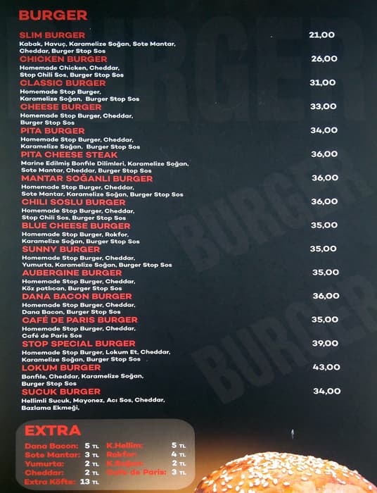 burger stop menu