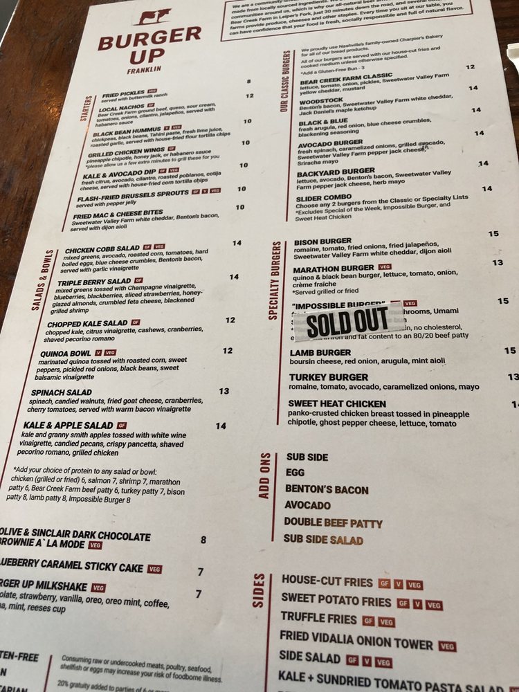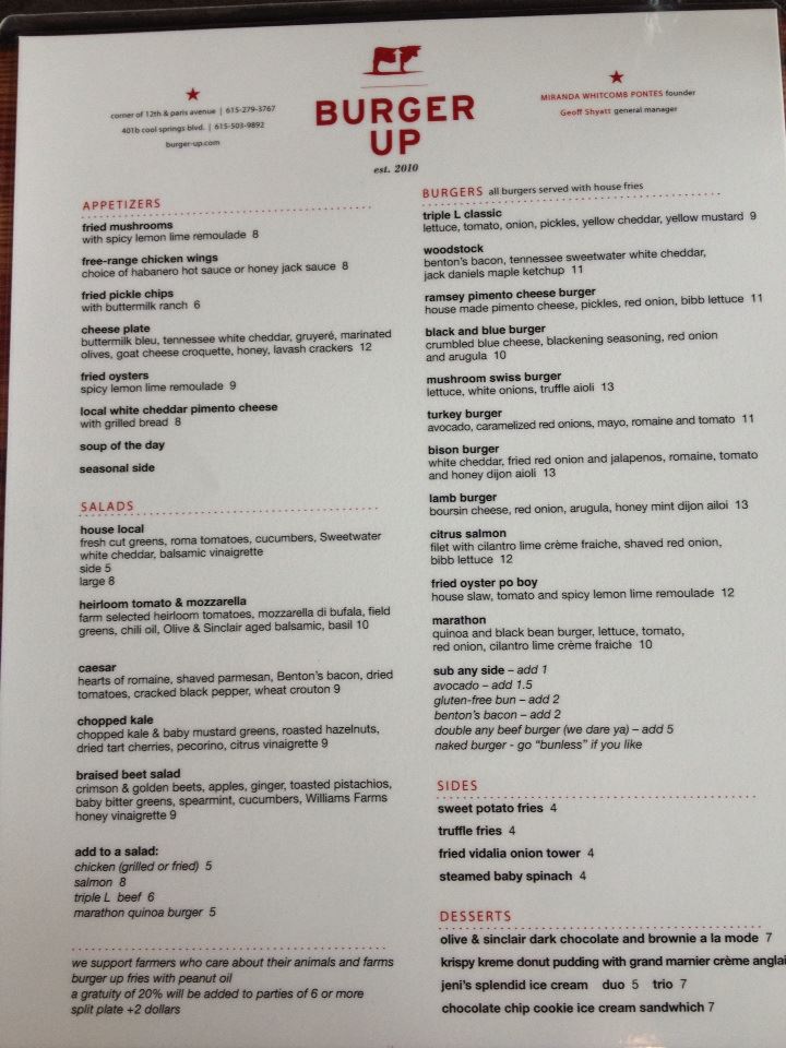 burger up menu