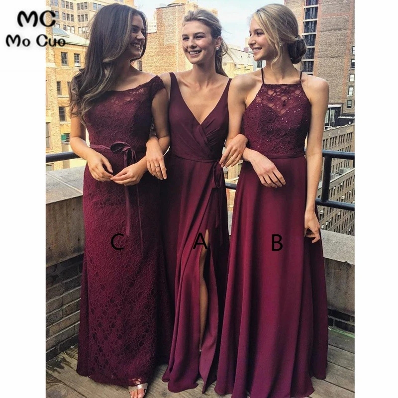 burgundy bridesmaid dresses long
