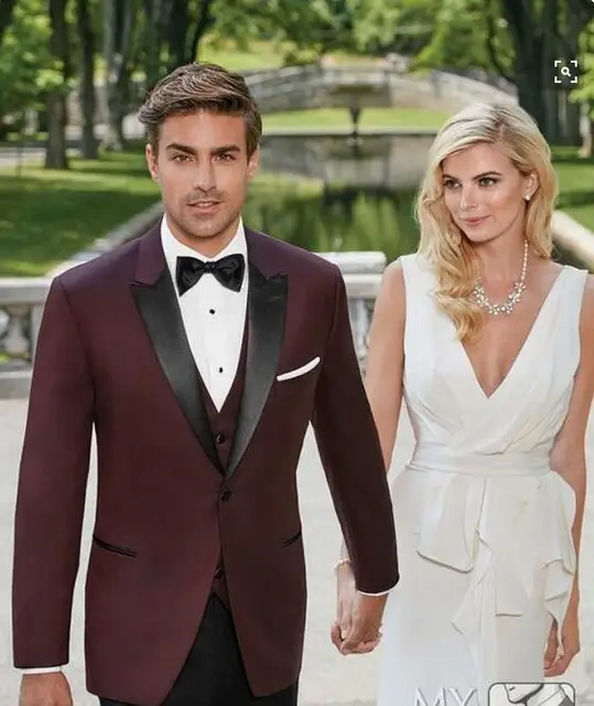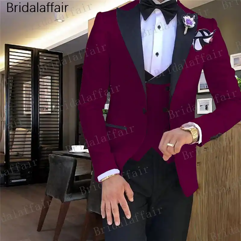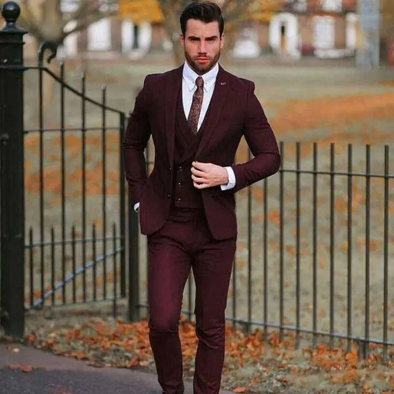 burgundy suit wedding