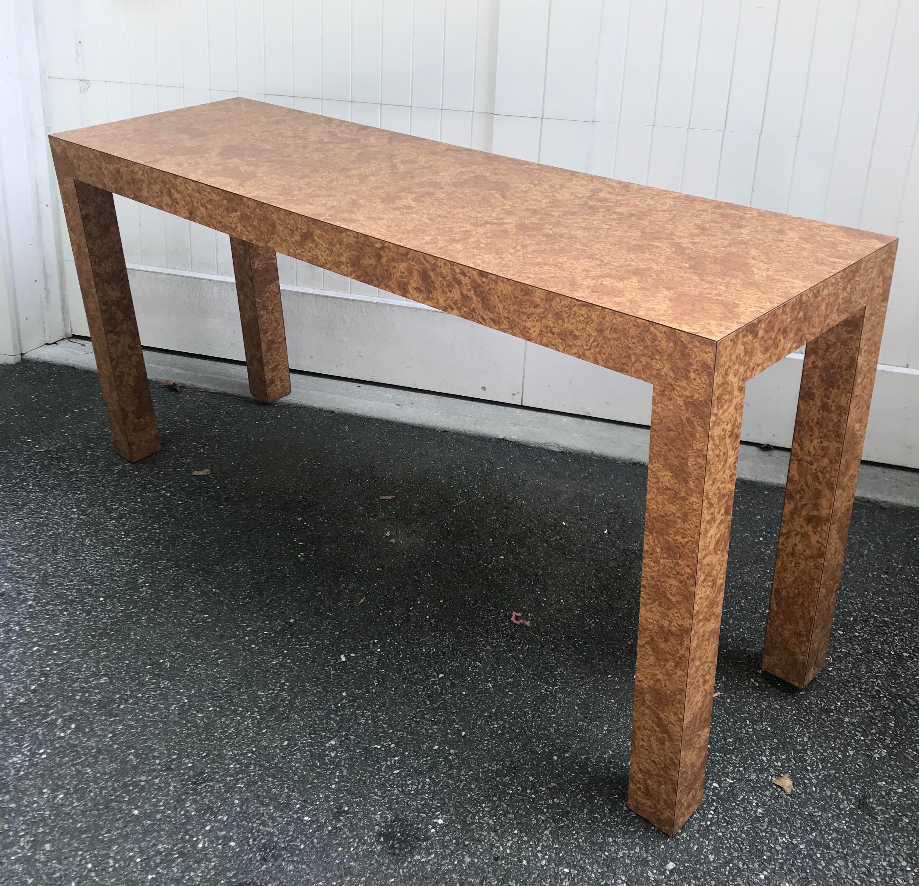 burl wood console table