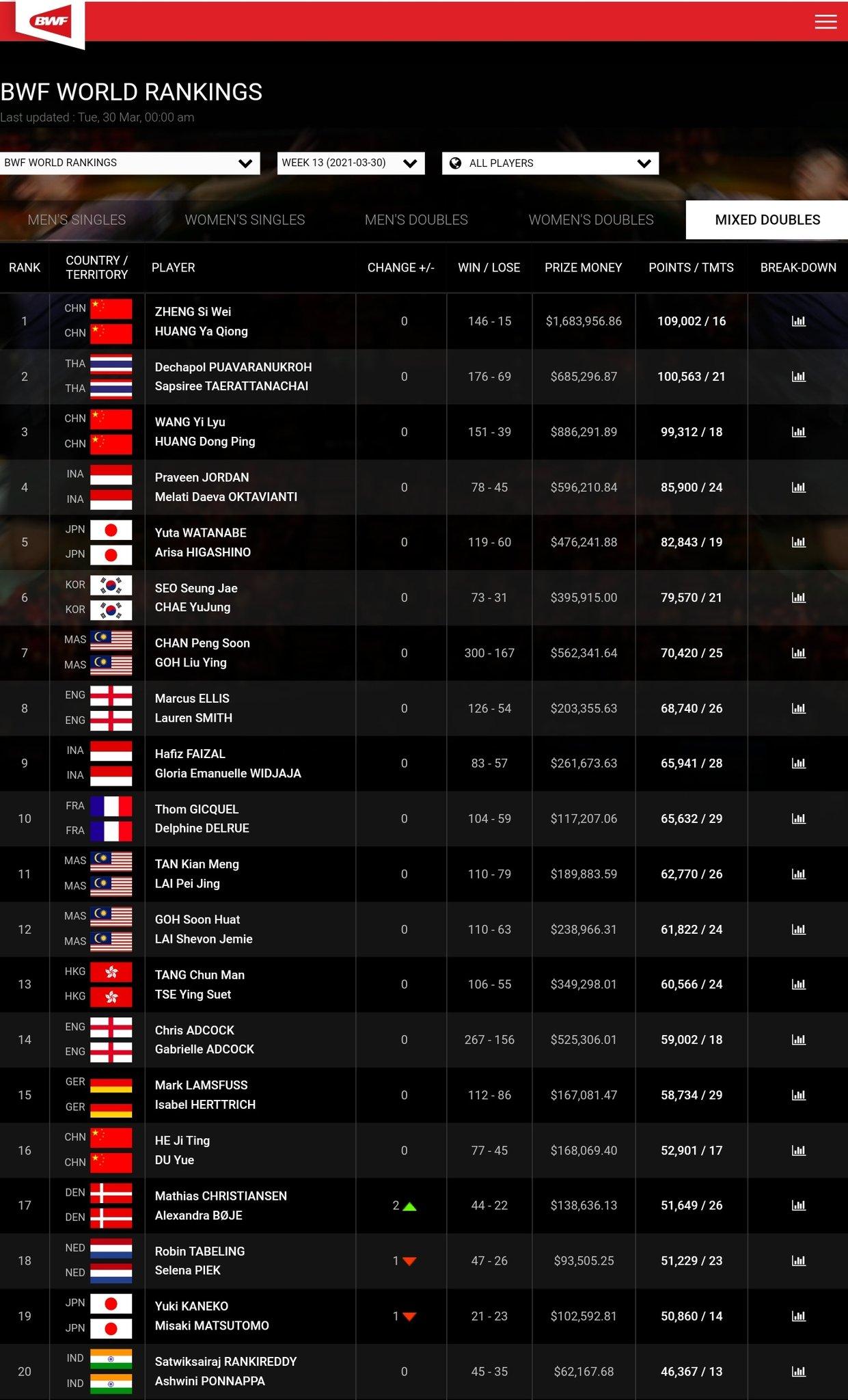 bwf world ranking
