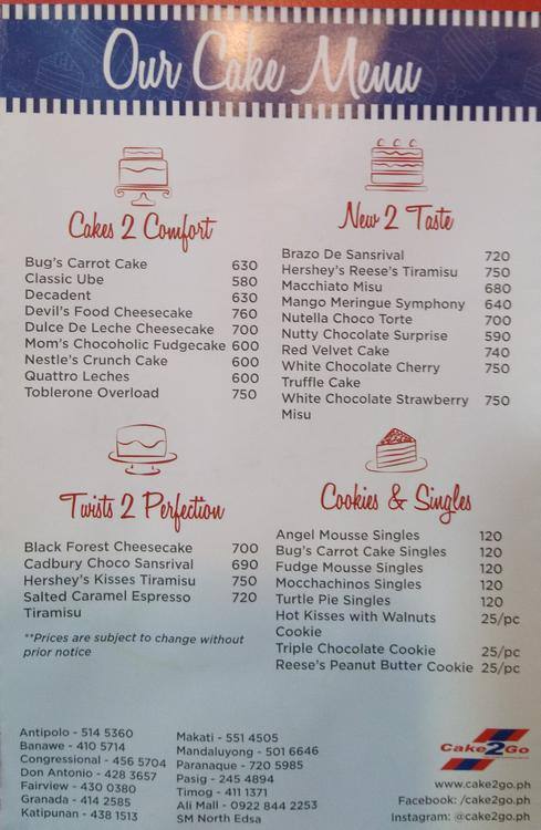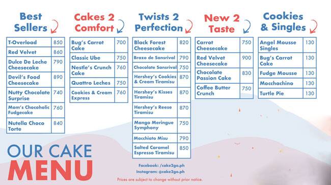 cake to go menu