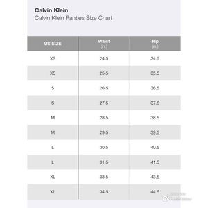 calvin klein underwear size chart