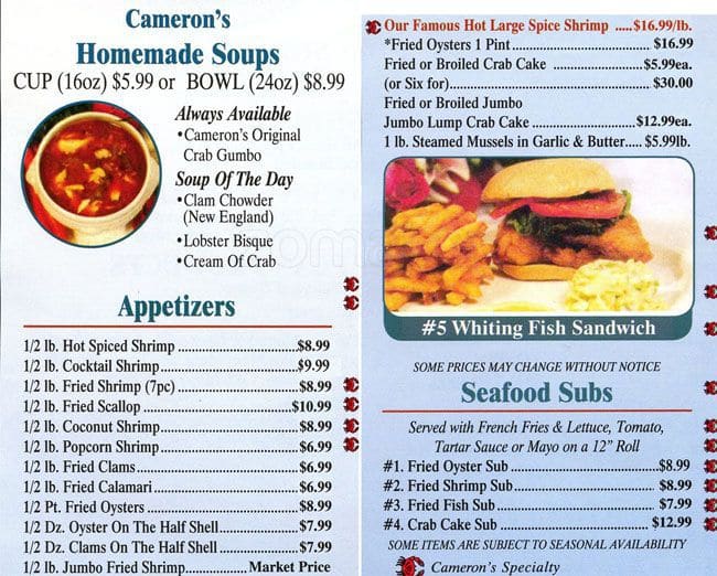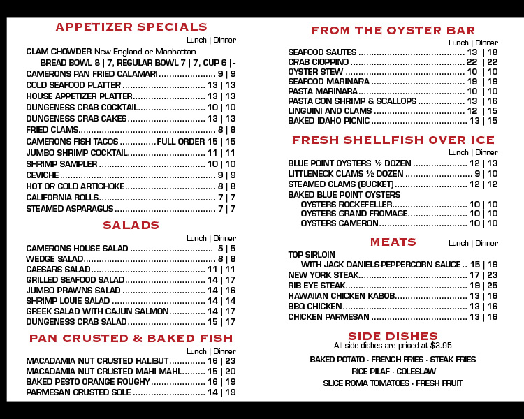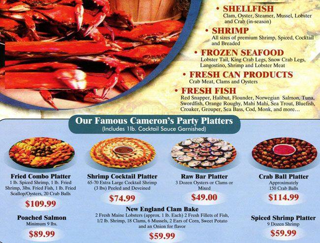 cameron's seafood menu