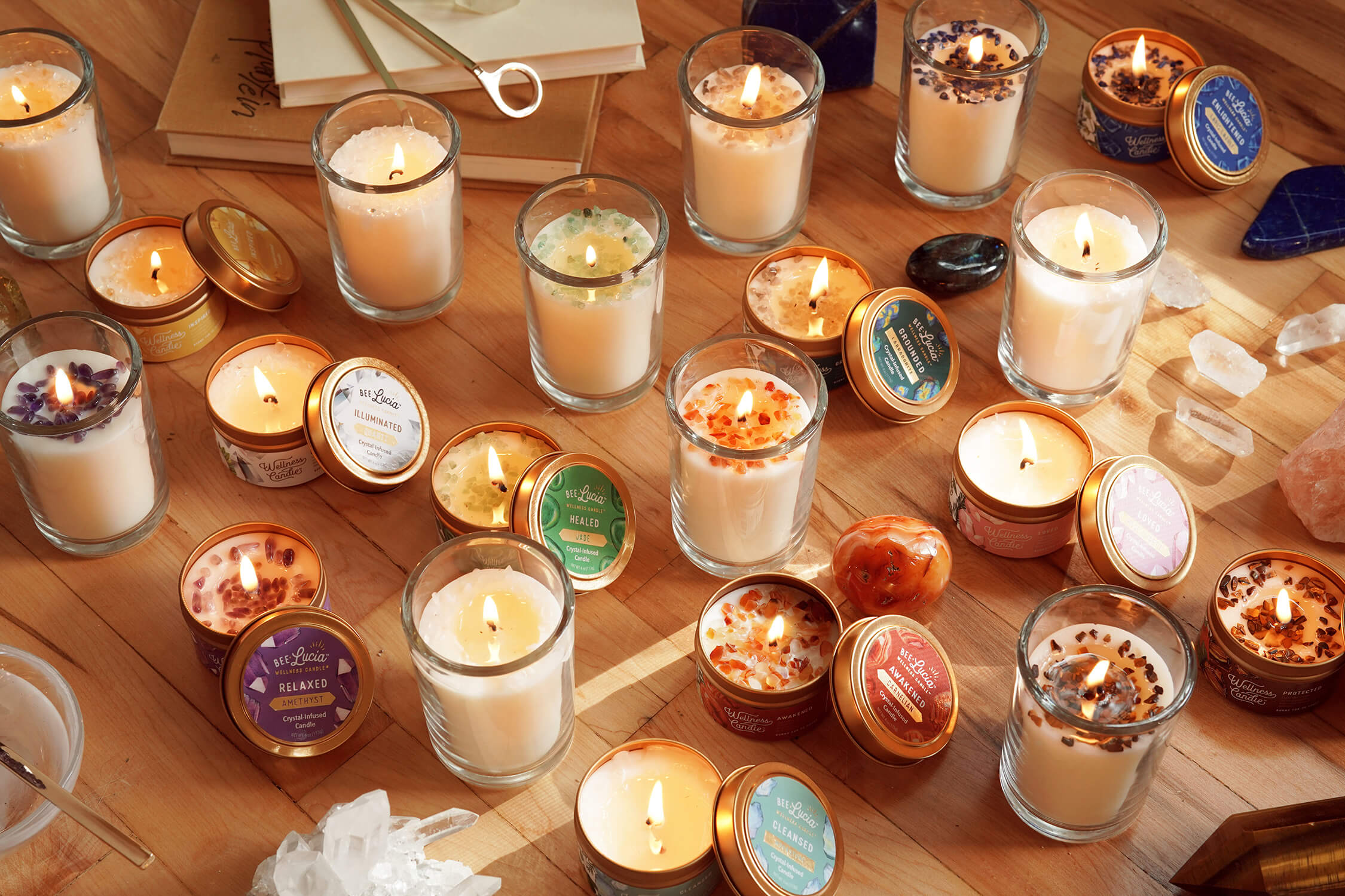 candles with crystals inside