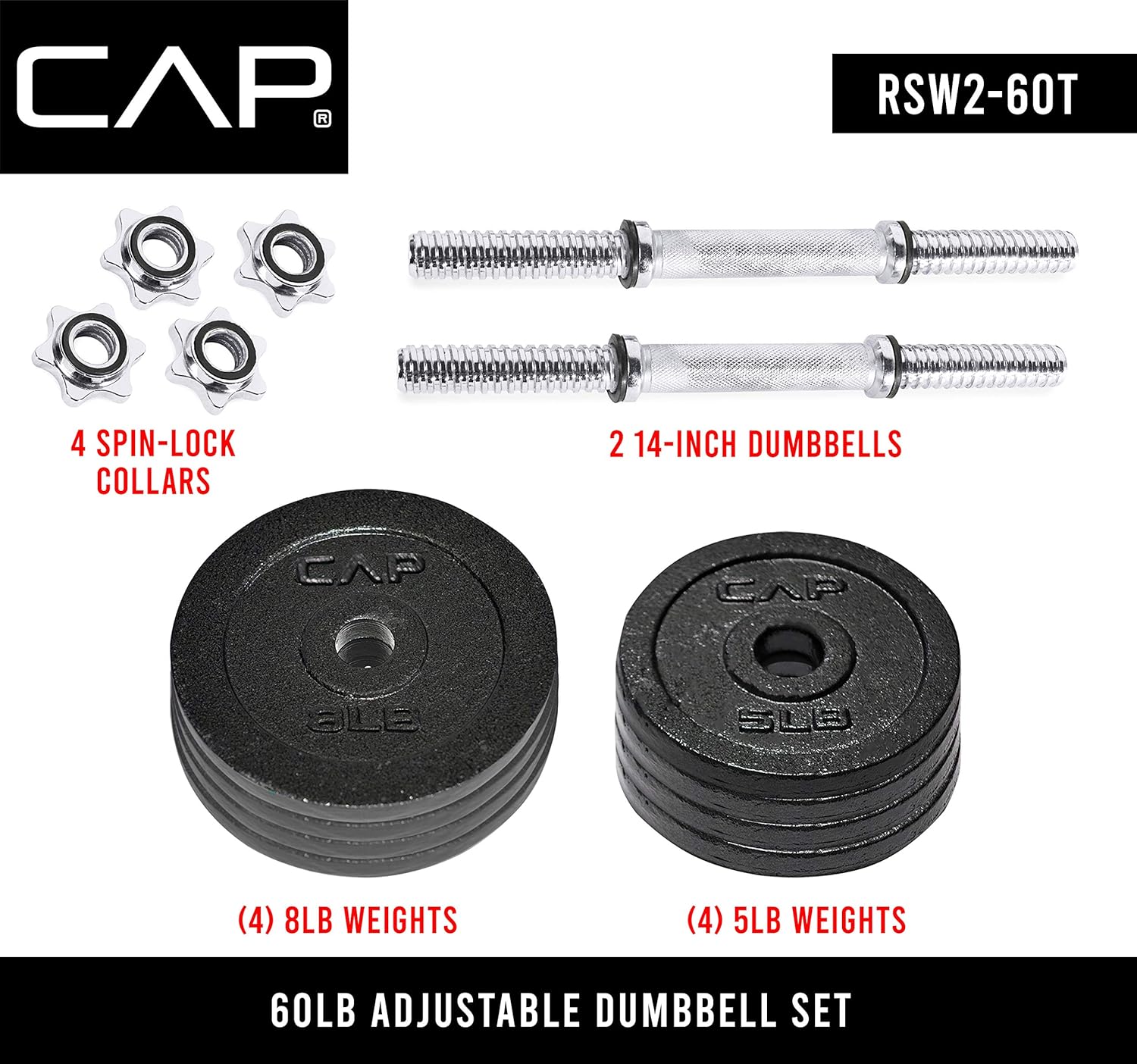 cap 200 lb adjustable dumbbell set
