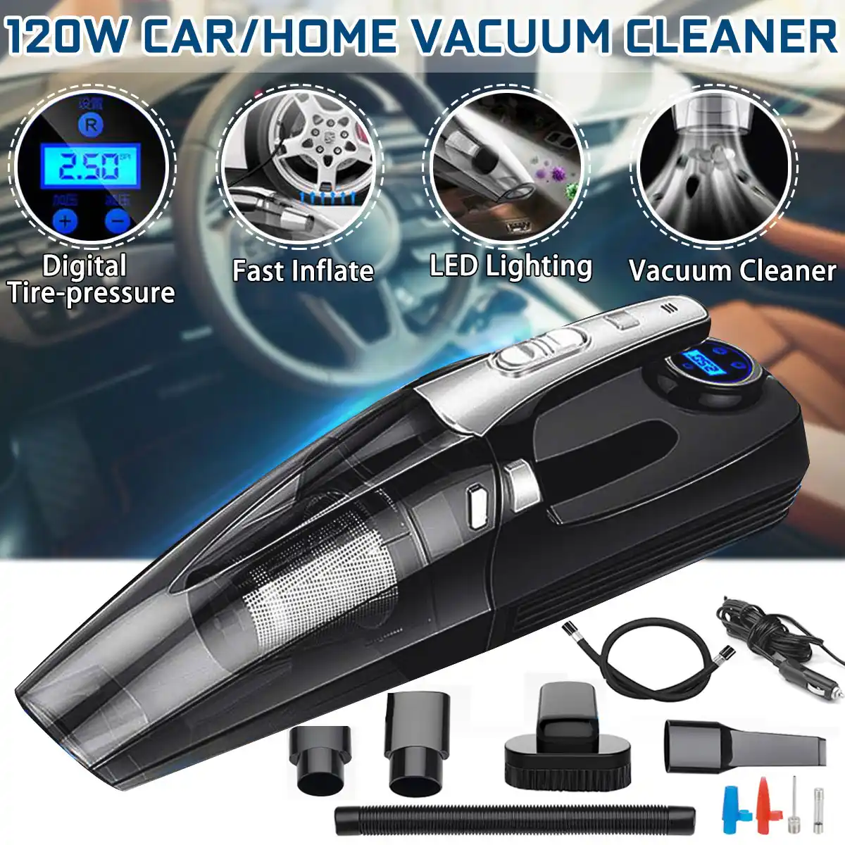car air pump and vacuum cleaner combo