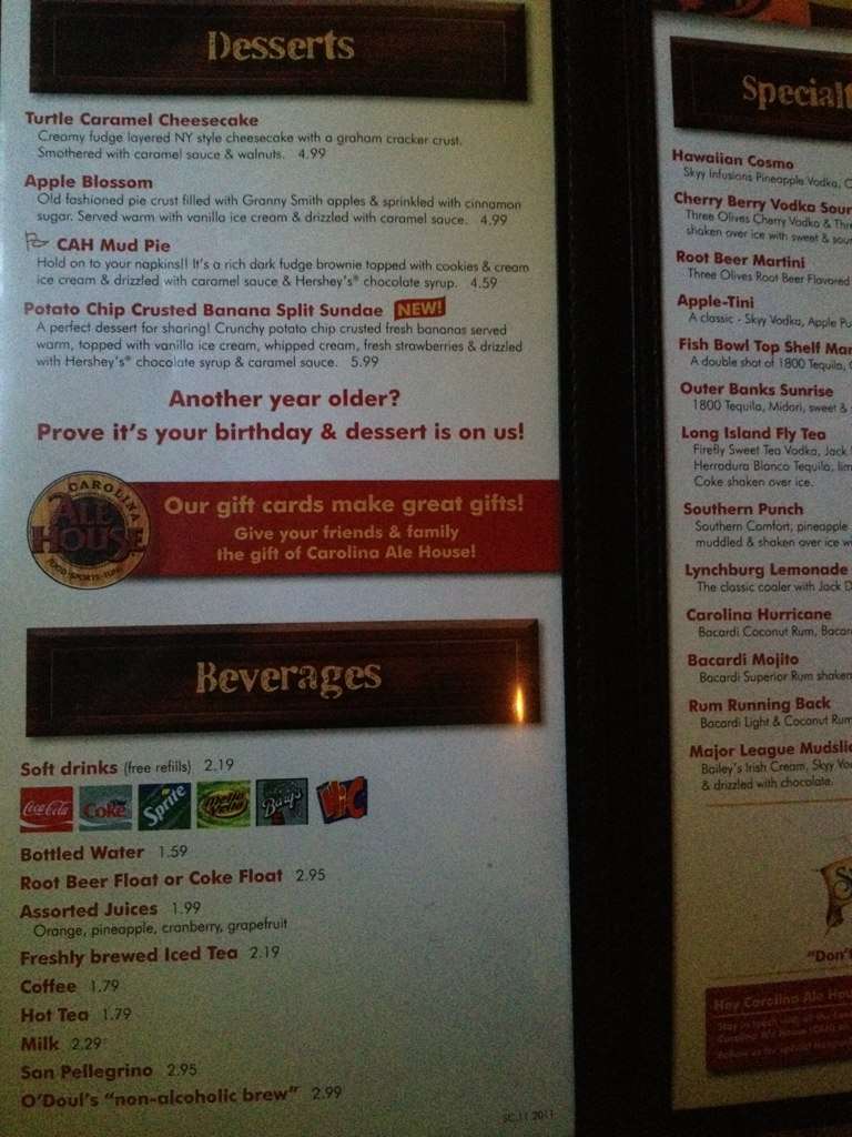 carolina ale house menu