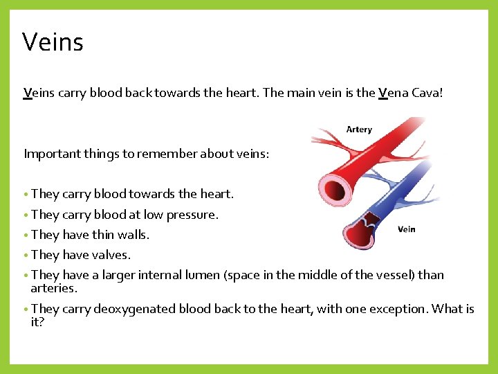 carry blood back to the heart