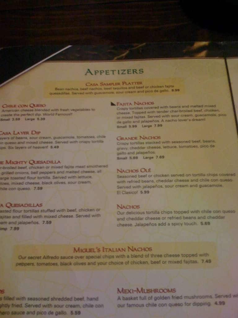 casa ole menu